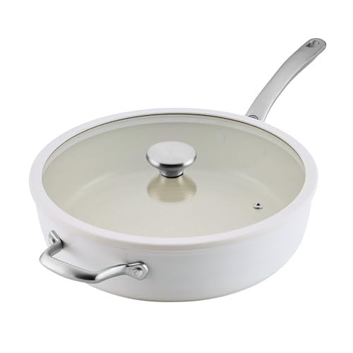 Circulon Halo with LaserDefense 30cm Induction Hob Ceramic Non Stick Saute Pan with Lid – Made Without PFAS, Non Toxic Ceramic Cookware, Dishwasher & Oven Safe Skillet Pan- Pearl White