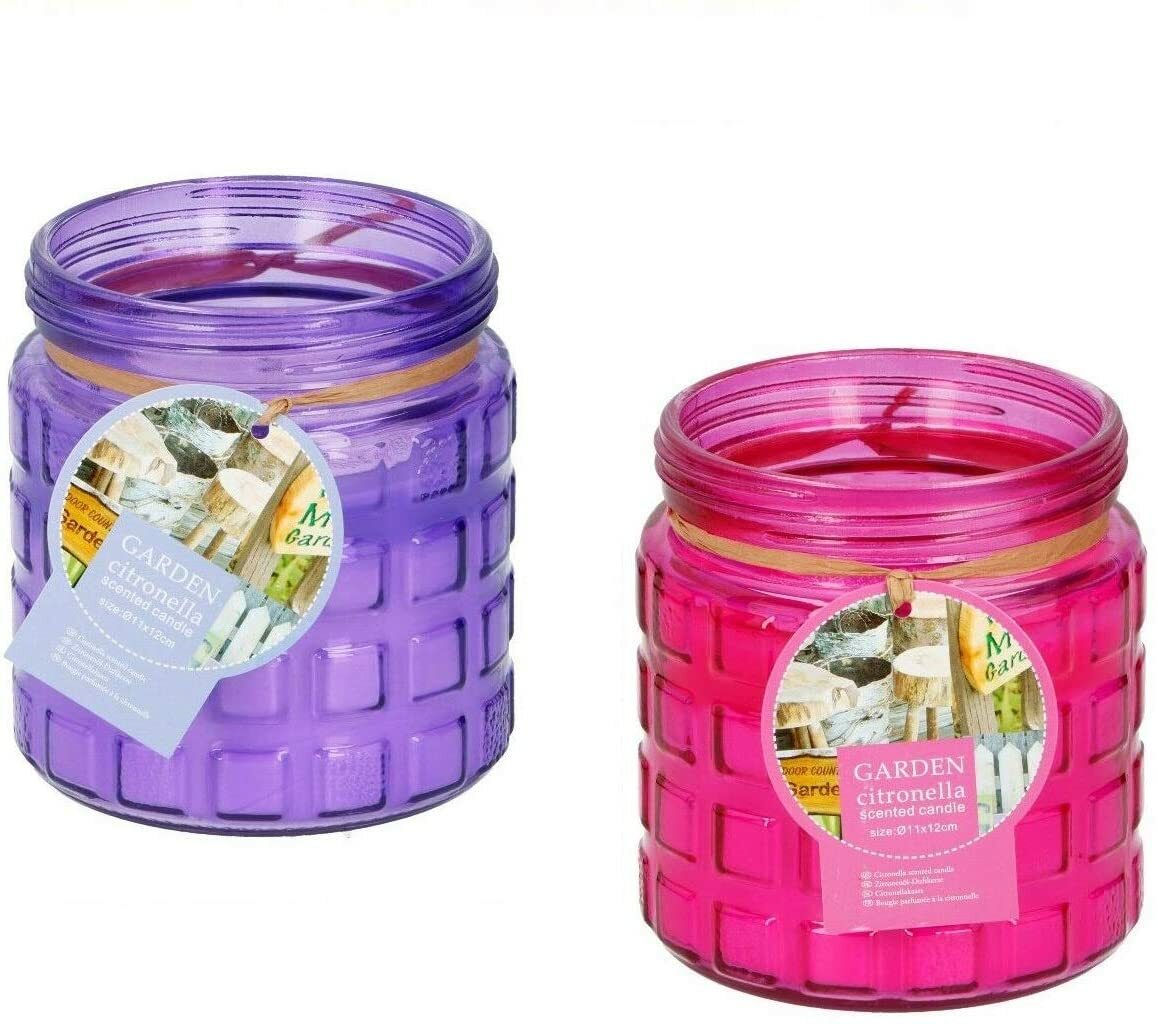 2x Large Citronella Oil Wax Candles Glass Holder 40 Hours Burn Time Purple Pink