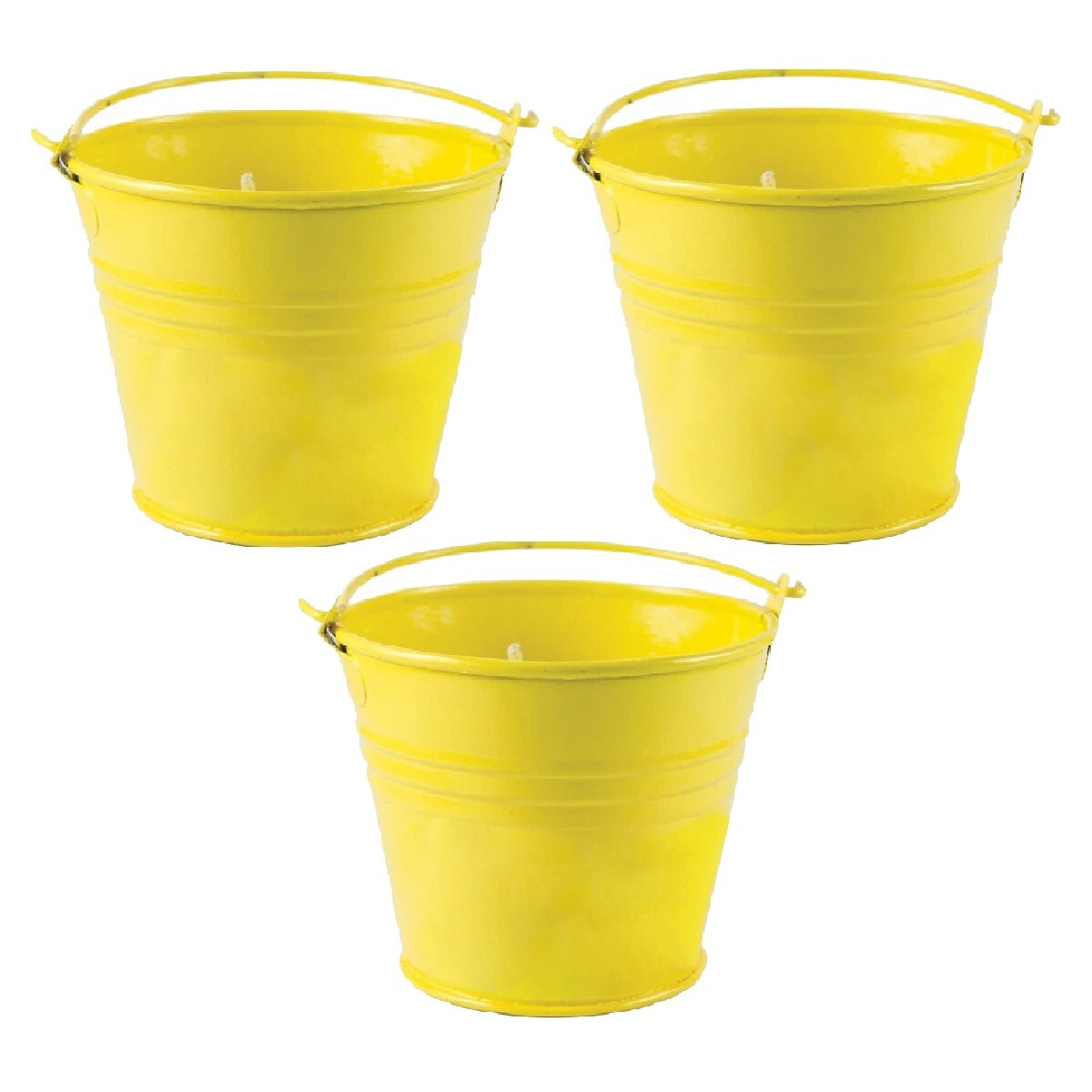 Set Of 3 Citronella Wax Candles In Decorative Coloured Iron Bucket 5H - Green