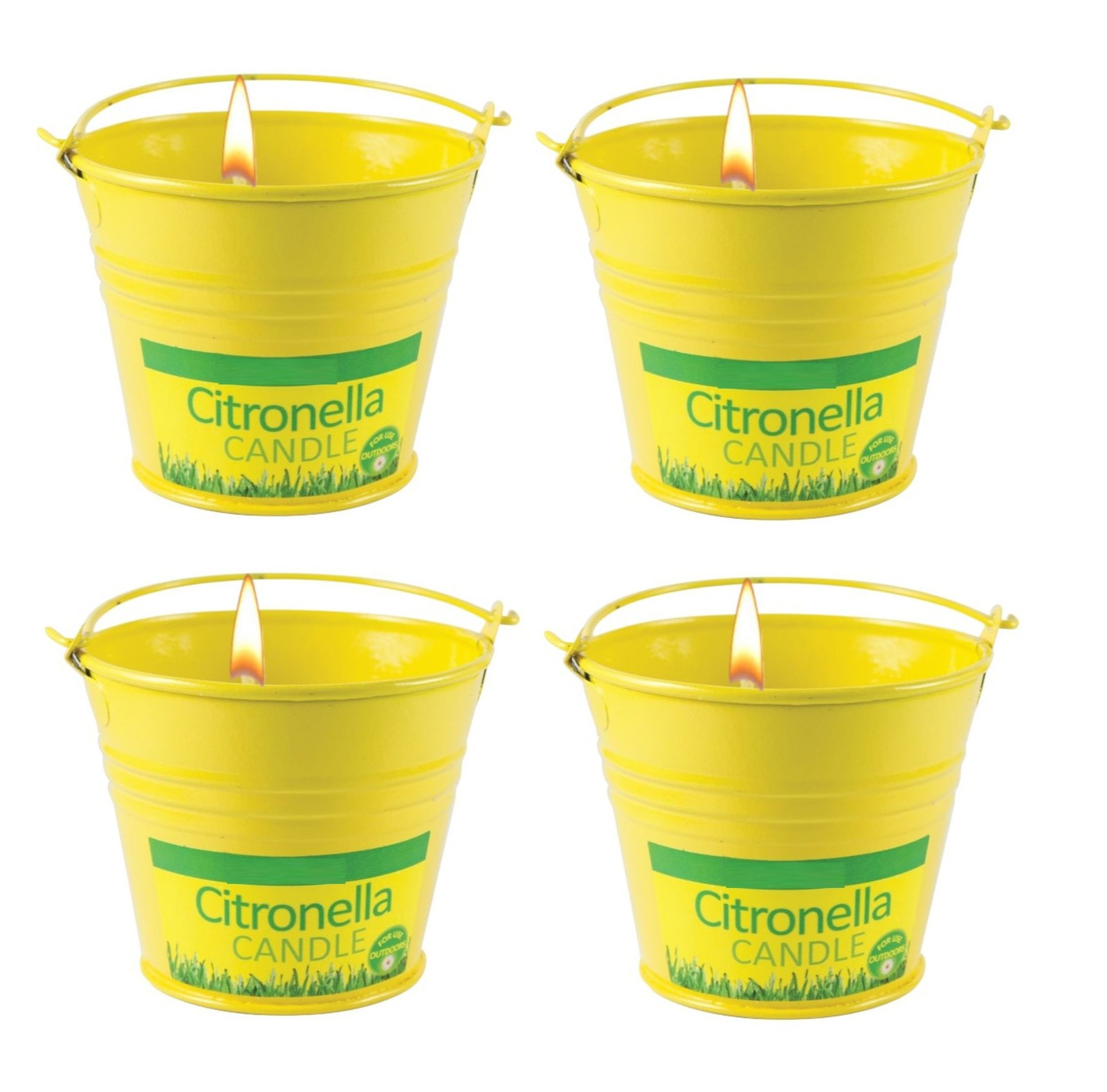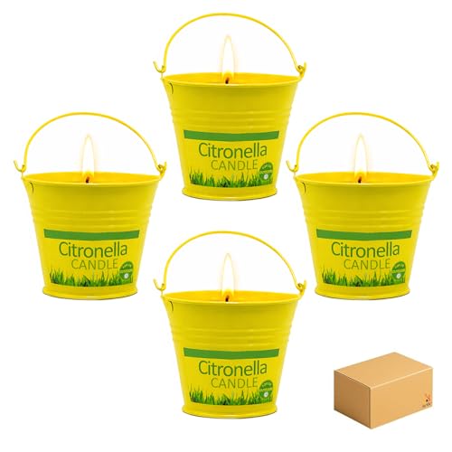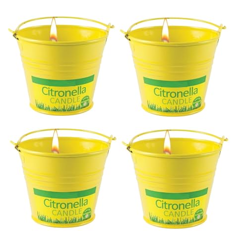 4 Citronella Bucket Candles Outdoor - 25H Burn Time - Garden Candle Set - Insects Mosquitos Repellent Citrus Fragrance for Camping BBQ Outdoor Dining.