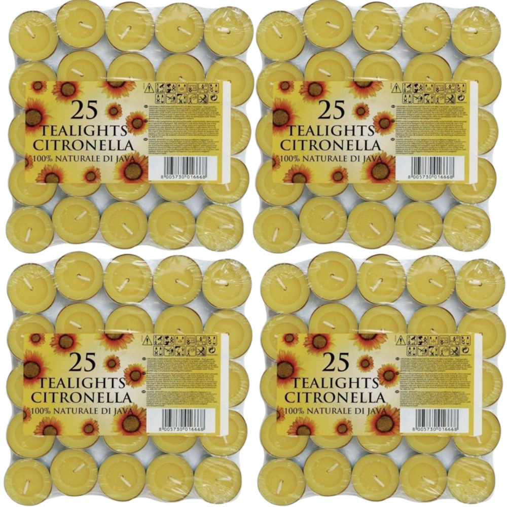 Citronella Tealight Candles Multipack of 50 or 100-4 or 8 Hours Burning Time Out