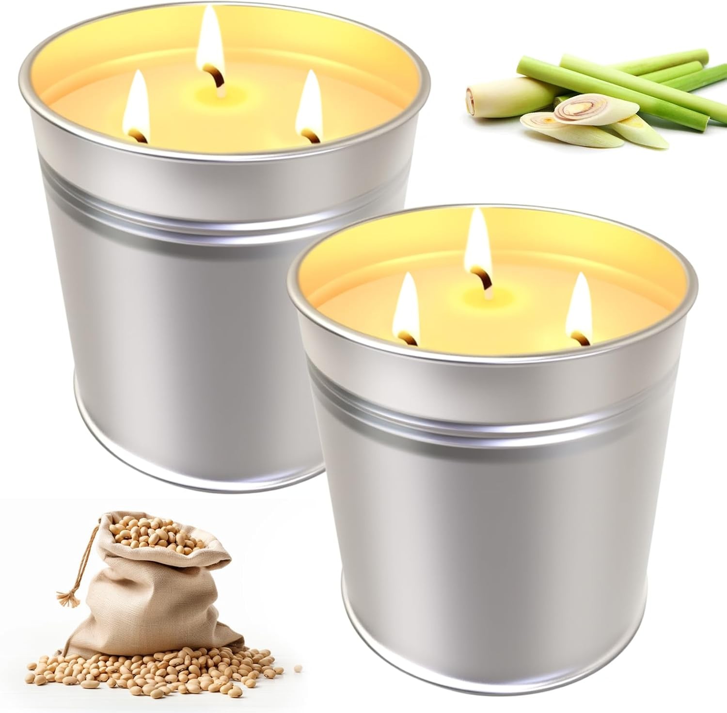 2 Pack Citronella Candle Outdoor,Large Citronella Candles 15Oz,Evenly Burning,N