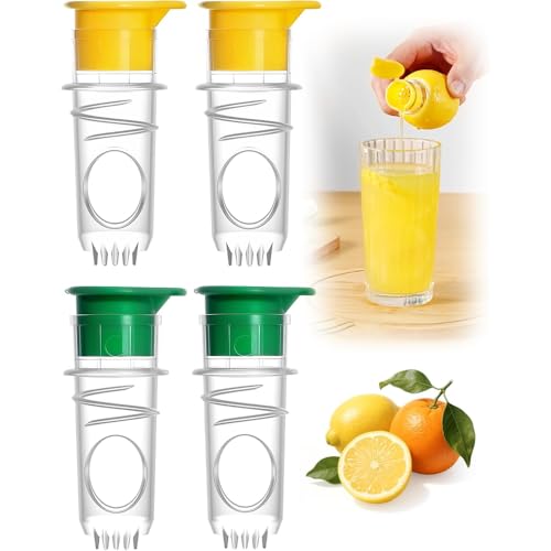4Pcs Screw Top Lemon Squeezer, Manual Juicer Hand Press with Built-in Filter, Plastic Lemon Juicer Lime Squeezer for Citrus Orange Kitchen Drinks Cocktails (2 Yellow, 2 Green)