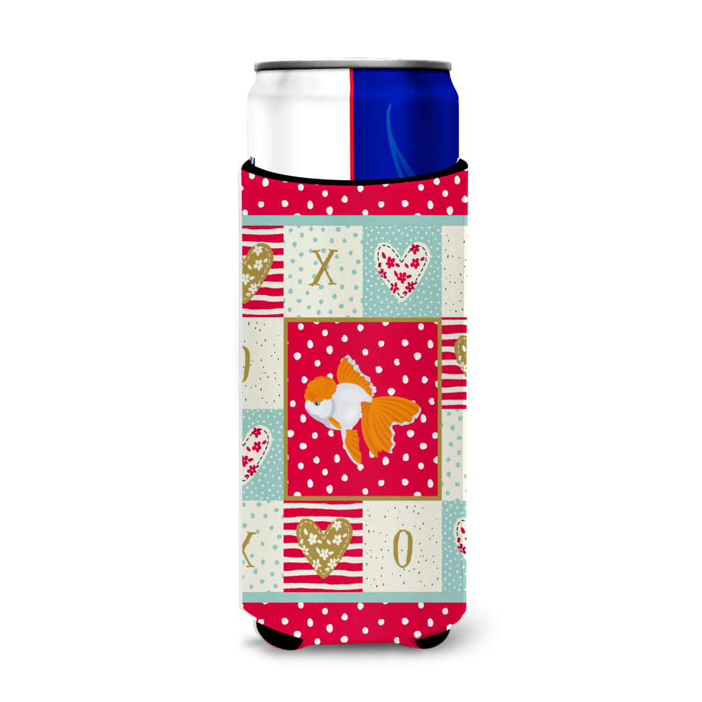 Caroline's Treasures CK5475MUK Oranda Red Cap Goldfish Love Ultra Hugger slim cans cold-beverage-koozies Multicolor