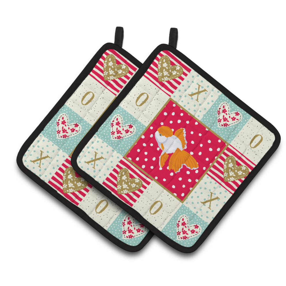 Caroline's Treasures CK5475PTHD Oranda Red Cap Goldfish Love Pair of Pot Holders potholders Multicolor