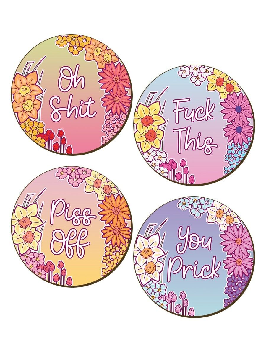OFFENSIVE COASTERS 4 Piece Coaster Set: Oh sh*t f*ck off you idiot sweary gift