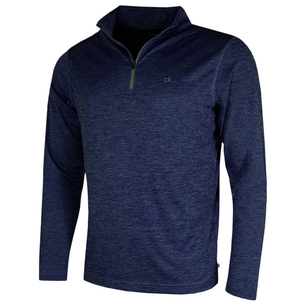 (M, Navy Marl) Calvin Klein Mens 2026 Harlem 1/4 Zip Lightweight Technical CK Golf Sweater