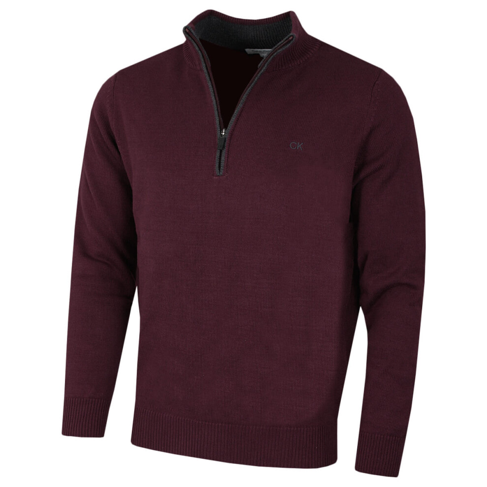 Calvin Klein Mens 1/2 Zip CK Golf Sweater - Burgundy Sport - L