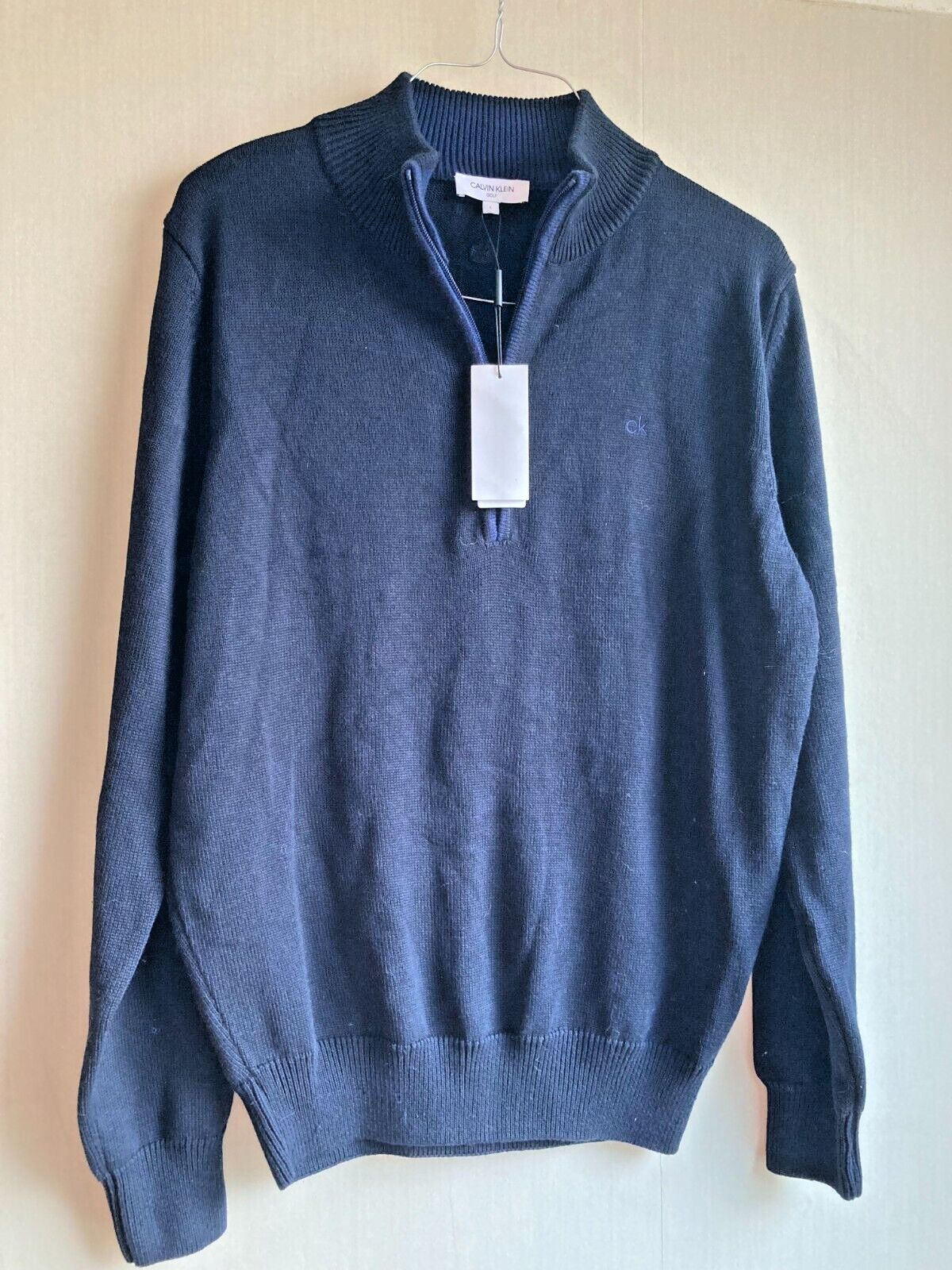 New Official Calvin Klein Knit Cotton 1/2 Zip Golf CK Top Sweater - Navy Large