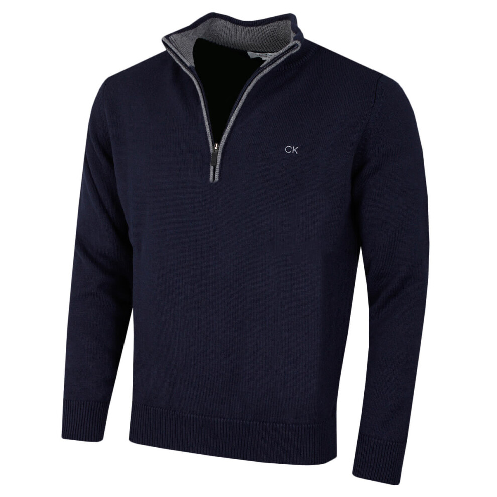 (S, Midnavy) Calvin Klein Mens 2026 Knit Cotton 1/2 Zip Golf CK Top Sweater