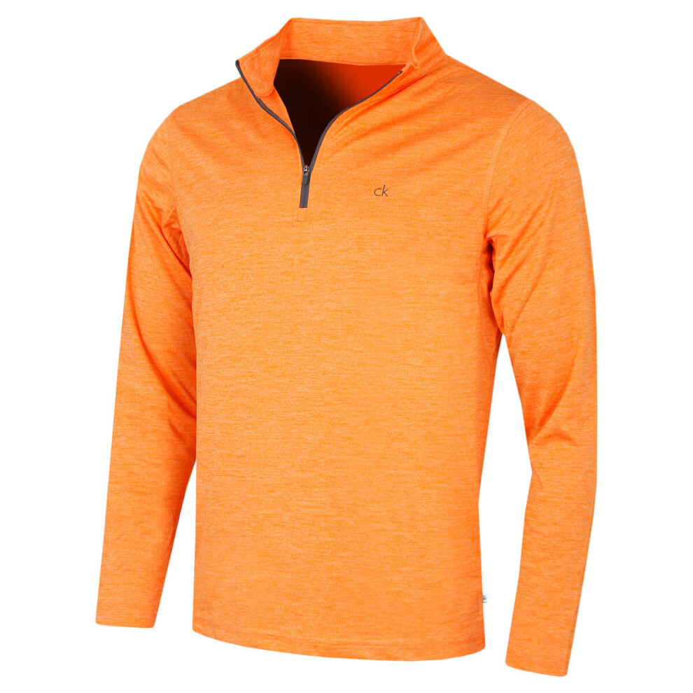 (M, Orange Marl) Calvin Klein Mens 2026 Harlem 1/4 Zip Lightweight Technical CK Golf Sweater