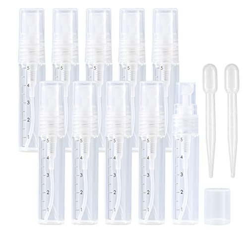 Apstaqeoo 10Pcs, 5Ml Empty Glass Spray Bottles with Scale - Clear Mini Sample Perfume Atomizer Vial Travel Bottles Set with Fine Mist Sprayer & Clear Dust Cap Perfect for Fragrance, Essential Oils