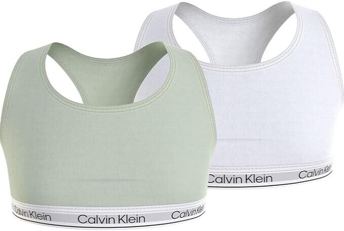 Calvin Klein GIRLS 2 Pack CK Bralette, 14-16 Years White/Lime New Logo