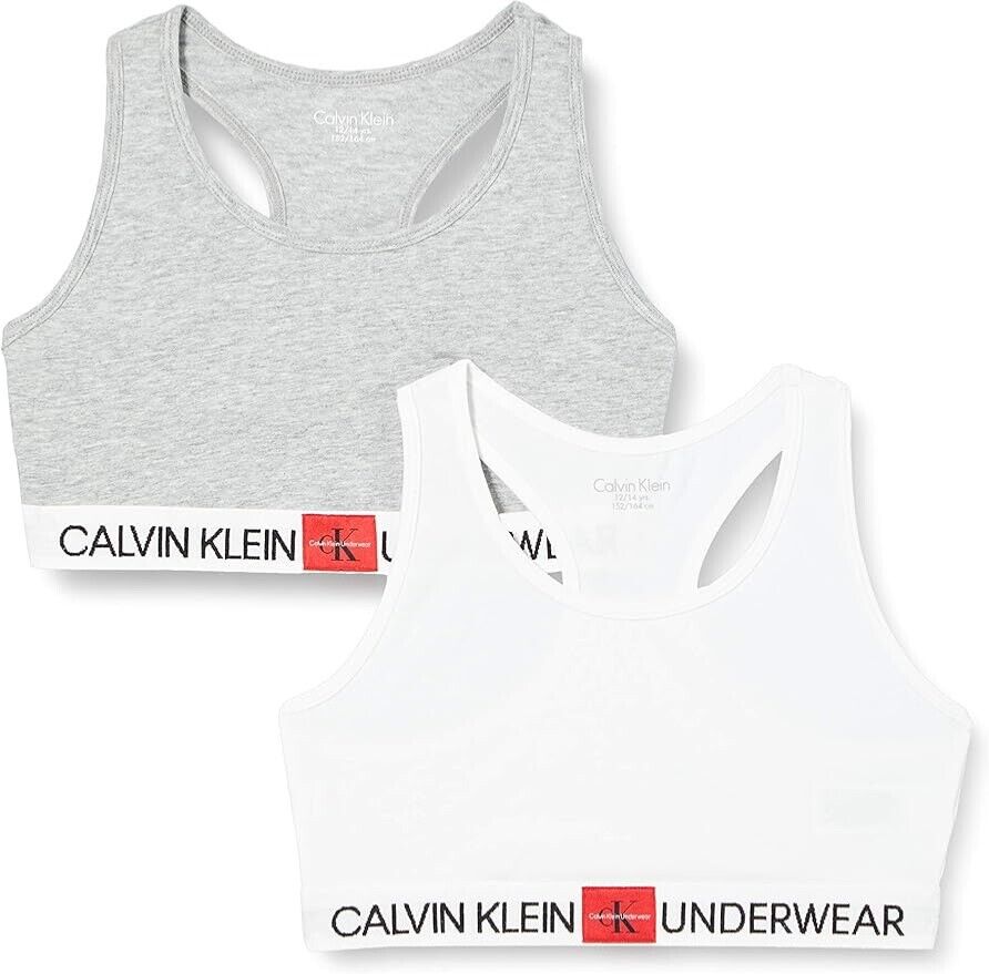 Calvin Klein GIRLS 2 Pack CK Minigram Bralette, 14-16 Years White/Grey Heather