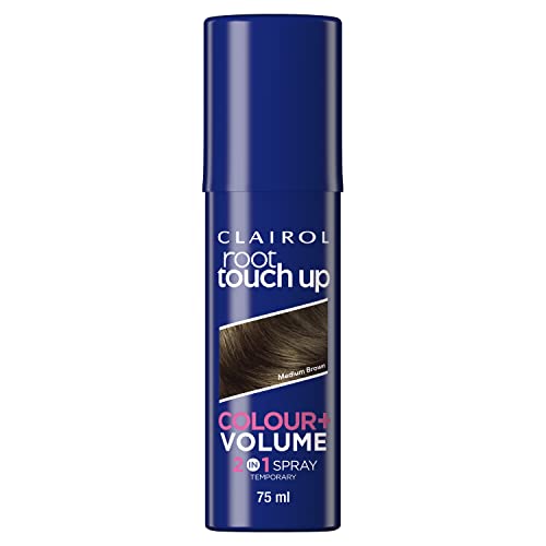 Clairol Root Touch Up Spray, Temporary Grey Coverage & Volume 2-in-1 Spray, Medium Brown, 75ML