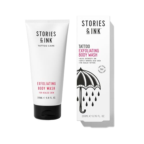Stories & Ink Tattoo Aftercare | EXFOLIATING BODY WASH - Body Scrub Removes Dead & Dull Skin, Brightens Healed Tattoos