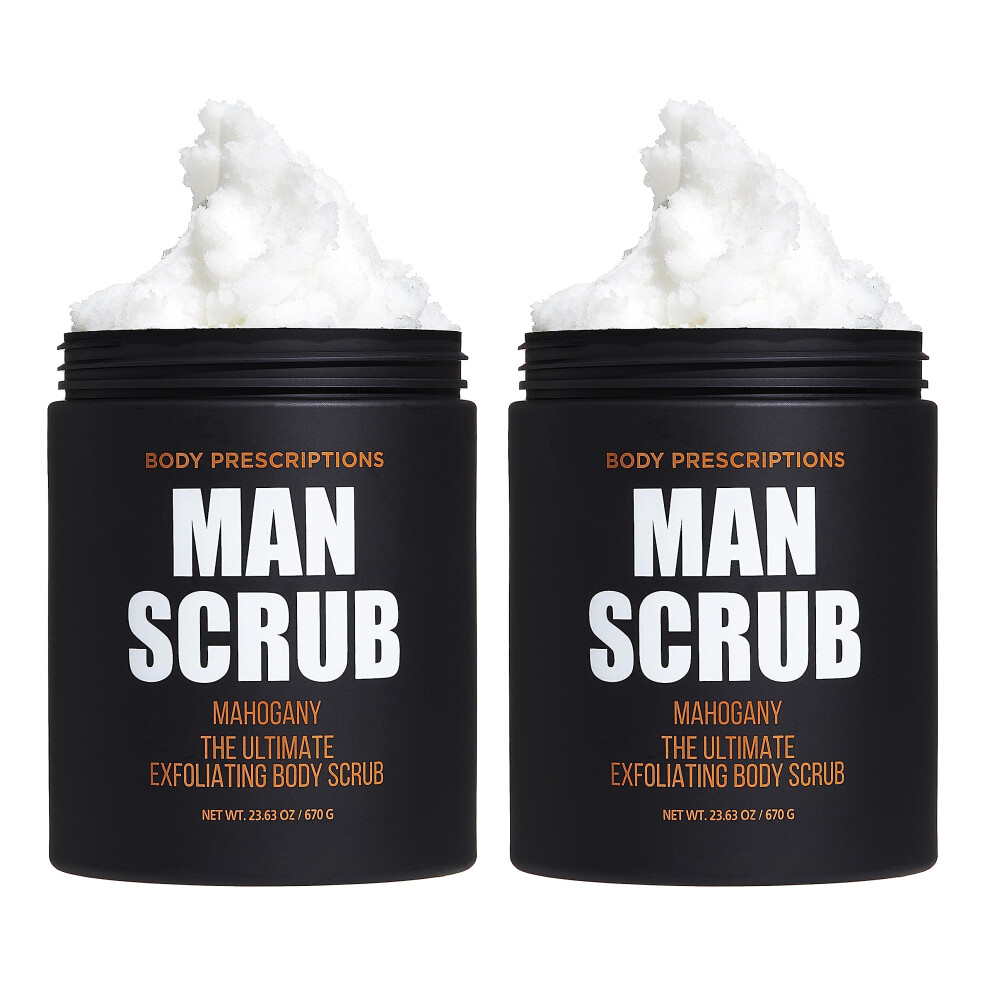 Body Prescriptions Body Scrub for Men-2 Pack Ultimate Exfoliating Scrub Infused with Mahogany Mens Body Wash in Jar with Twist Top 21 oz Each For A