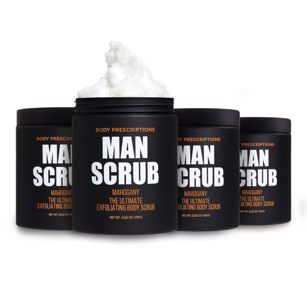 Body Prescriptions Body Scrub for Men-4 Pack Ultimate Exfoliating Scrub Infused with Mahogany Mens Body Wash in Jar with Twist Top 28.2 oz Each For