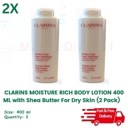 2x Clarins Moisture Rich Body Lotion 400ml with Shea Butter for Dry Skin - New