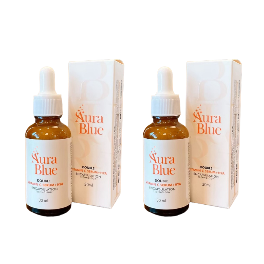 Aura Blue Double Vitamin C Serum HYA Reduce Acne Dark Spots Anti Aging 30 ml x 2