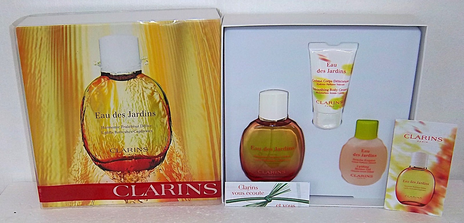 CLARINS EAU DES JARDINS 100ML + BODY CREAM + SHOWER GEL GIFT SET - NEW & BOXED