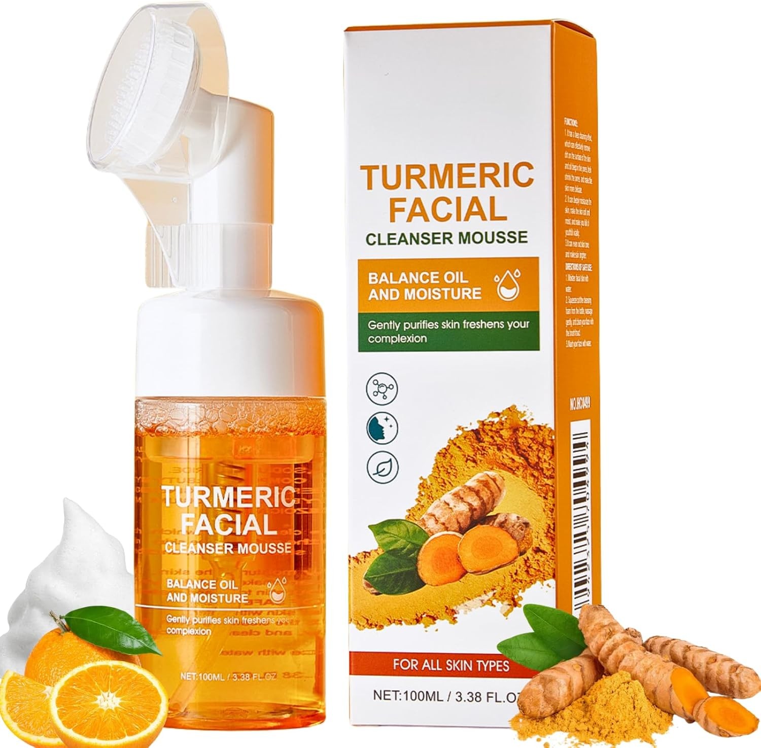 Turmeric Face Wash, Gentle Foaming Facial Cleanser with Brush, Brightening Face