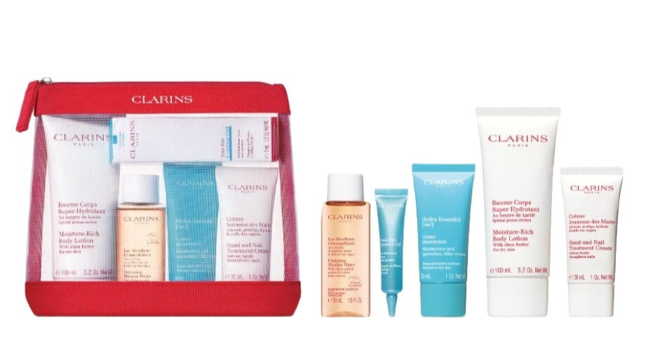 Clarins ❤️ Head to Toe Moisturizing 5-Piece Essentials w Travel Bag ❤️ Gift Set