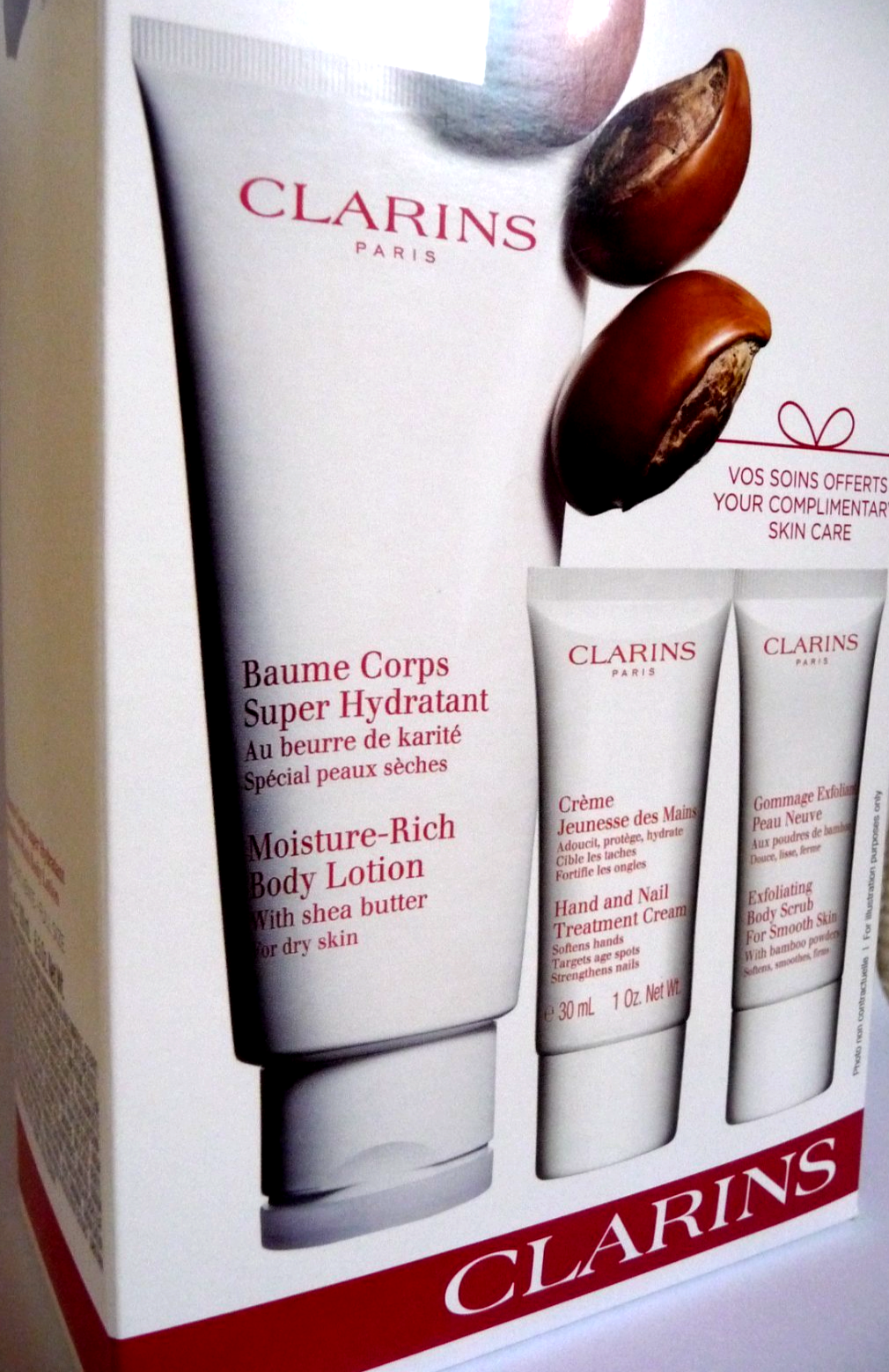 CLARINS Moisture-Rich Body Lotion Gift Set FULL SZ 200ml + Hand and Nail + Scrub