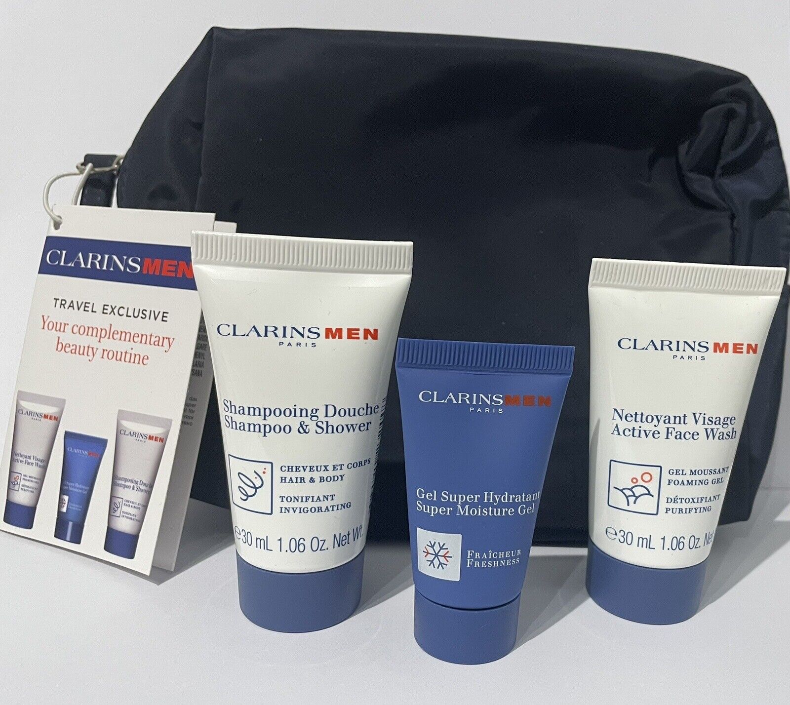 Clarins Men Gift Set 30ml Active Face Wash + 12ml Super Moisture Balm + 3ml Shave + Beard Oil