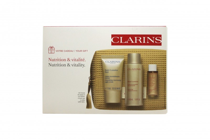 Clarins Nutri-Lumière Gift Set 50ml Nourishing Day Cream + 7ml Total Eye Lift + 15ml Nourishing Night Cream + 0.9ml Double Serum + Pouch