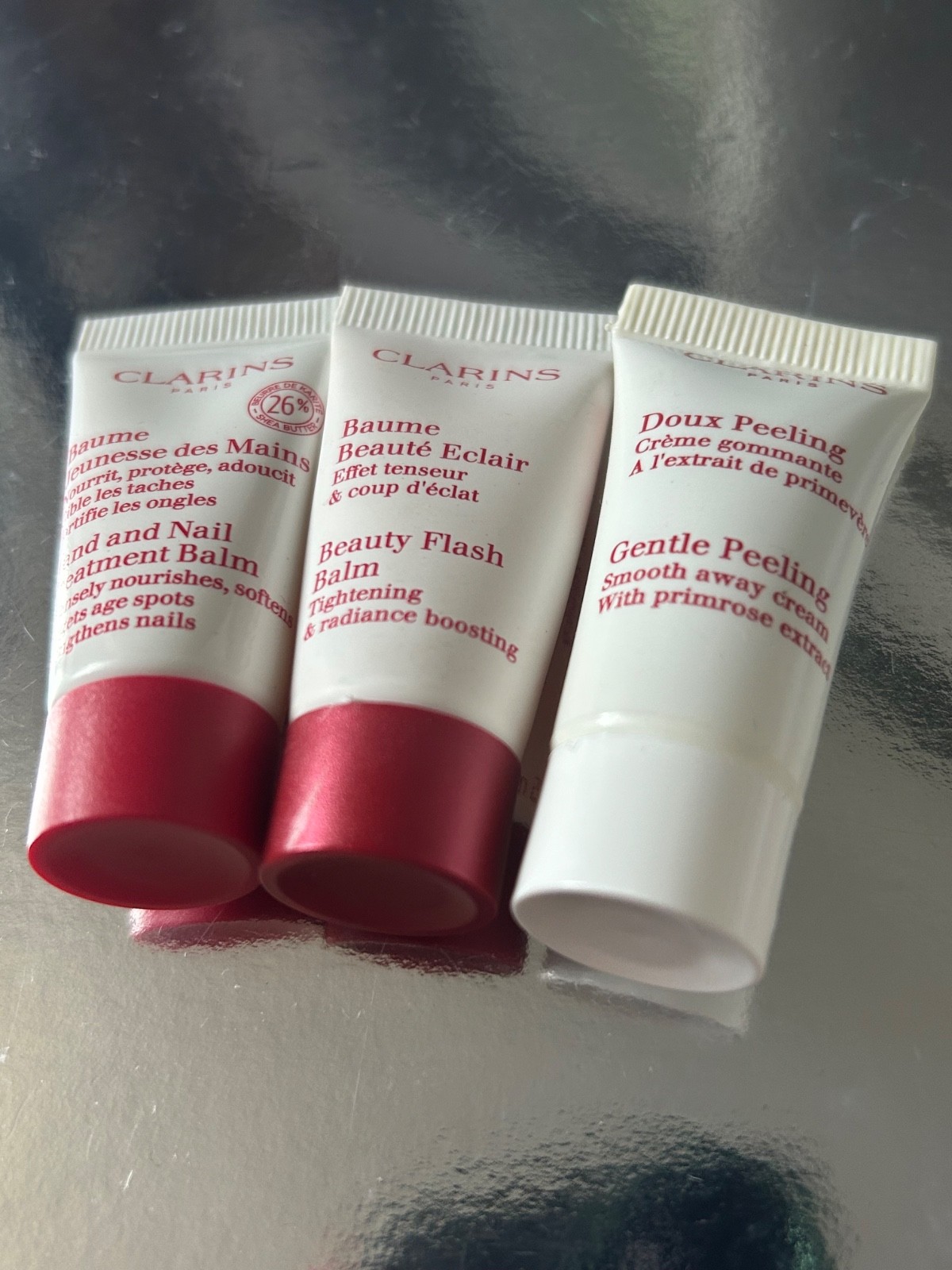 Clarins hand nail, beauty flash balm, peeling minis 5ml