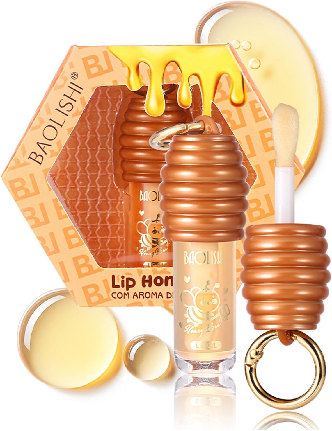 Cute Honey Hydrating Lip Oil,Clear Lip Gloss Keychain for Girls,Flavoring Oil W