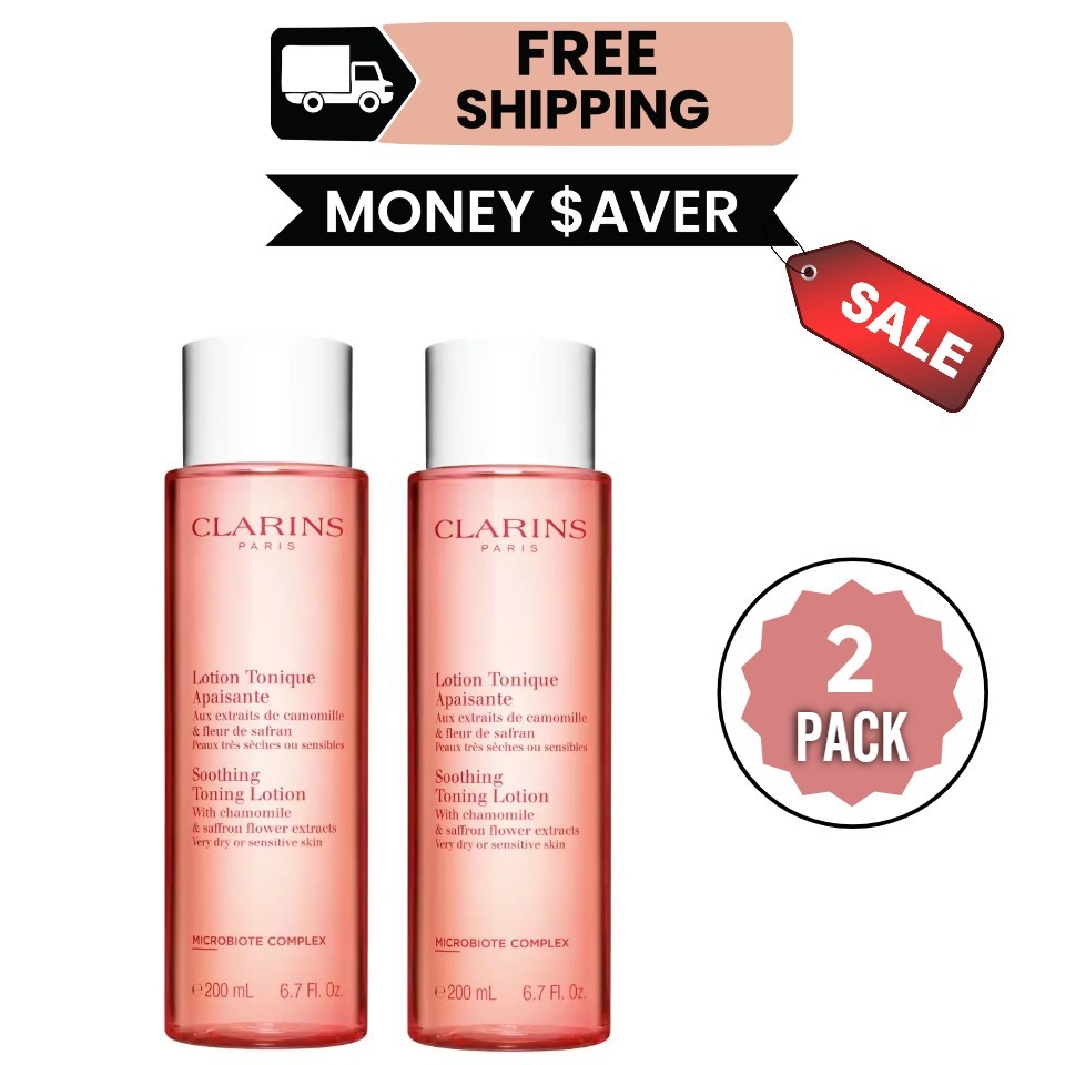 2 x Clarins Soothing Toning Lotion 200ml For Very Dry Or Sensitive Skin