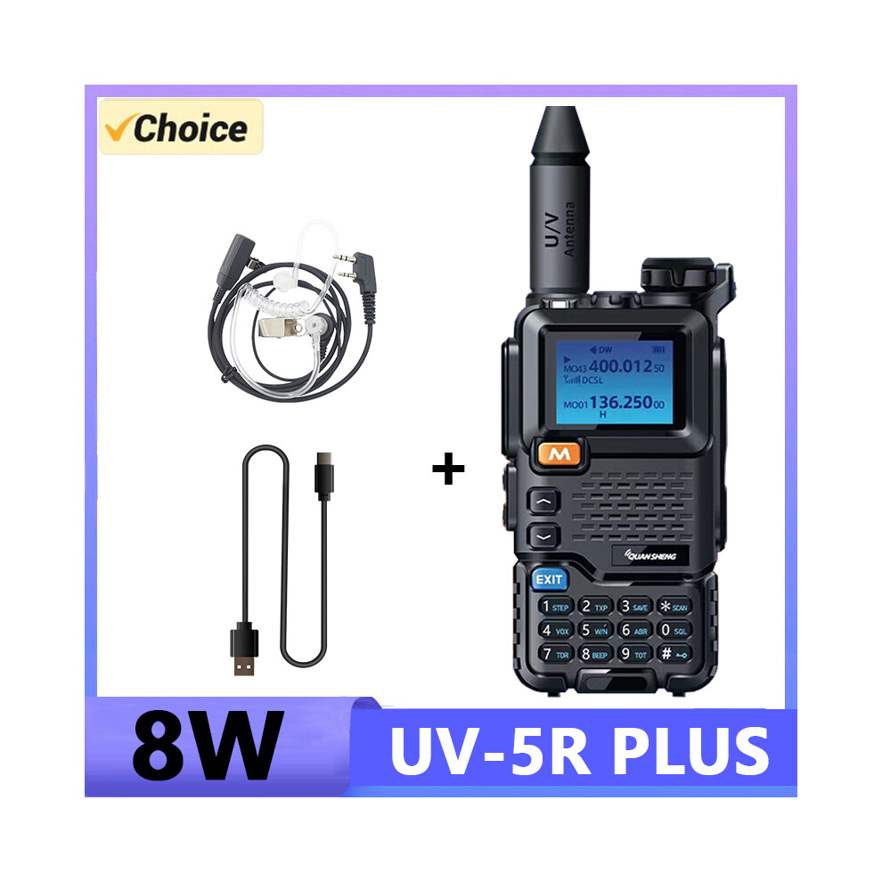 (EU-Type C-Headset) UV-5R PLUS Walkie Talkie 8W 3800mAh 50-600MHz Full Band Two Way Radio Scrambler Multi-Band Transceiver