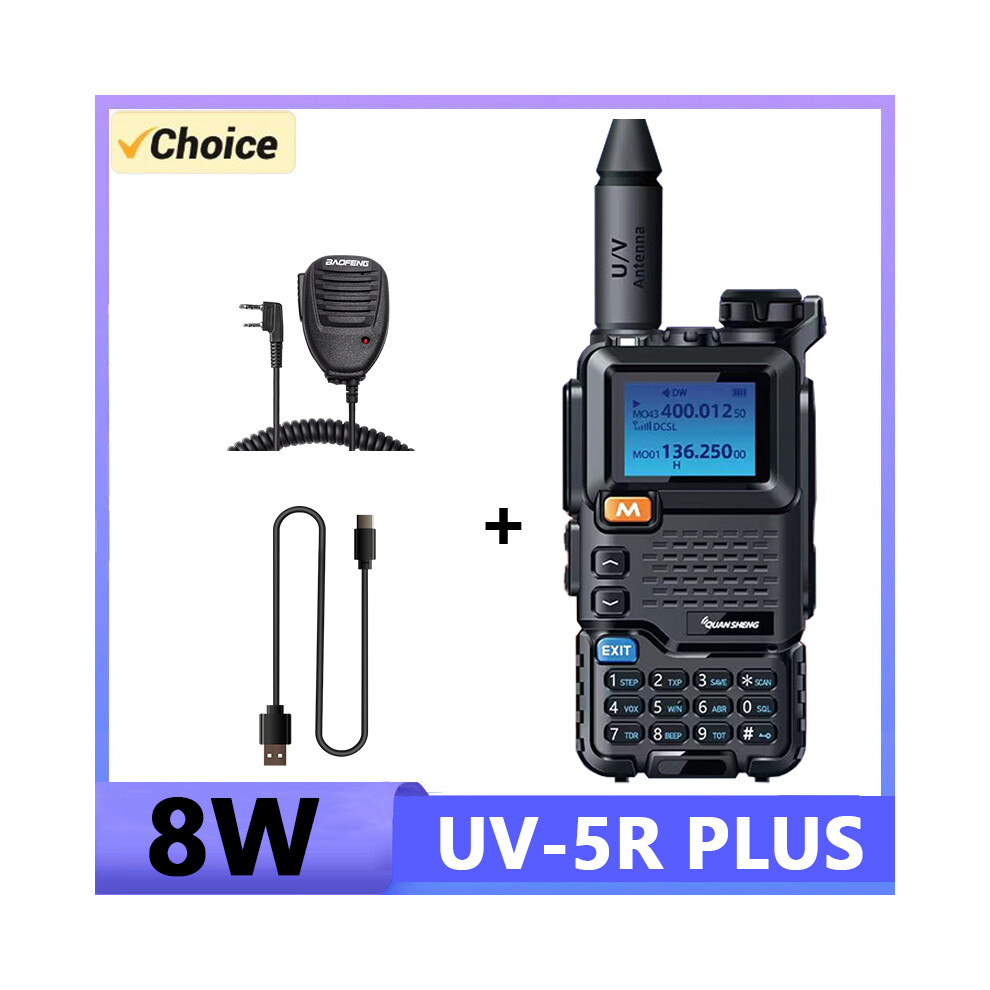 (EU-Type C-Mic) UV-5R PLUS Walkie Talkie 8W 3800mAh 50-600MHz Full Band Two Way Radio Scrambler Multi-Band Transceiver