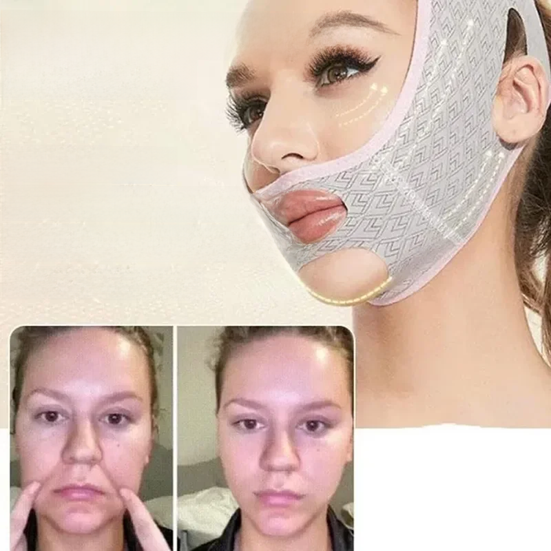 Jacquard V-Face Lifting Mask, Double Shaping Belt, Non-Wrapped, Facial Treatment for Chin Tightening and Sagging Skin