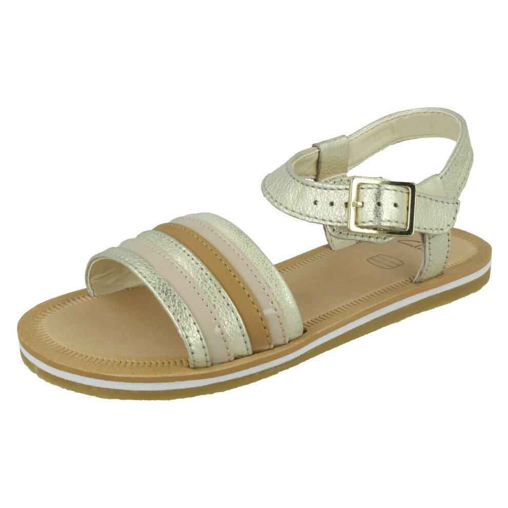 (UK 11 Child, Gold) Girls Clarks Buckle Fastening Open Toe Sandals Loni Moon - F Fit