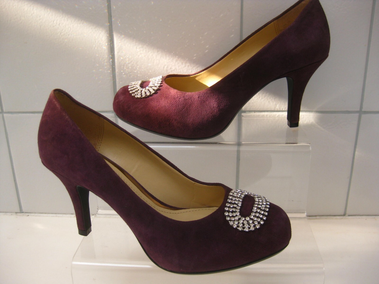 CLARKS SHOES STILETTO COURT 4 37 DRUM ROLL diamante purple suede high heels sexy