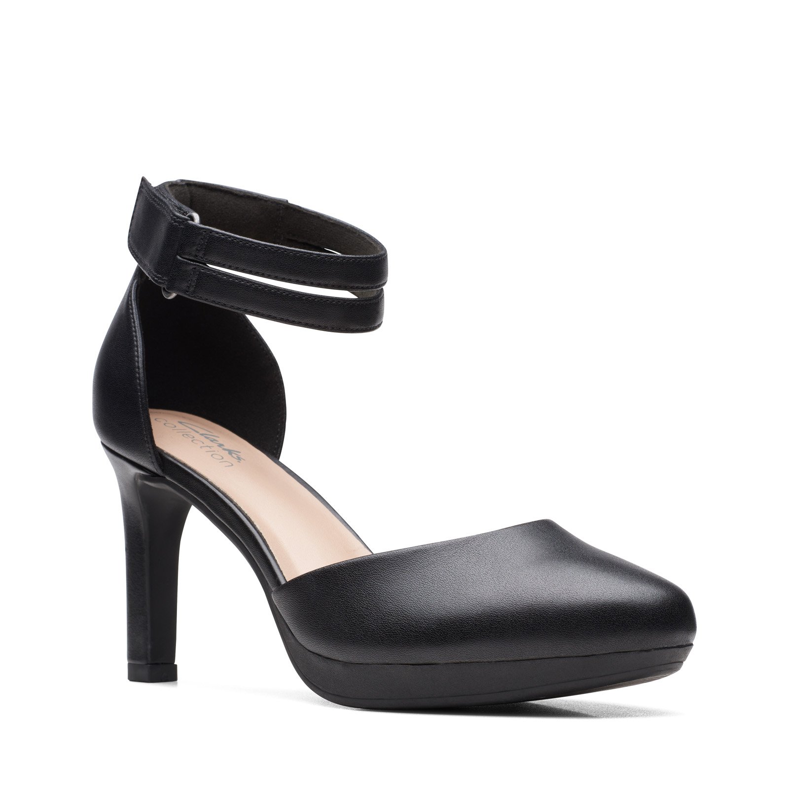 Clarks Ambyr Skip 26170517 Womens Black Leather Strap Heels Shoes
