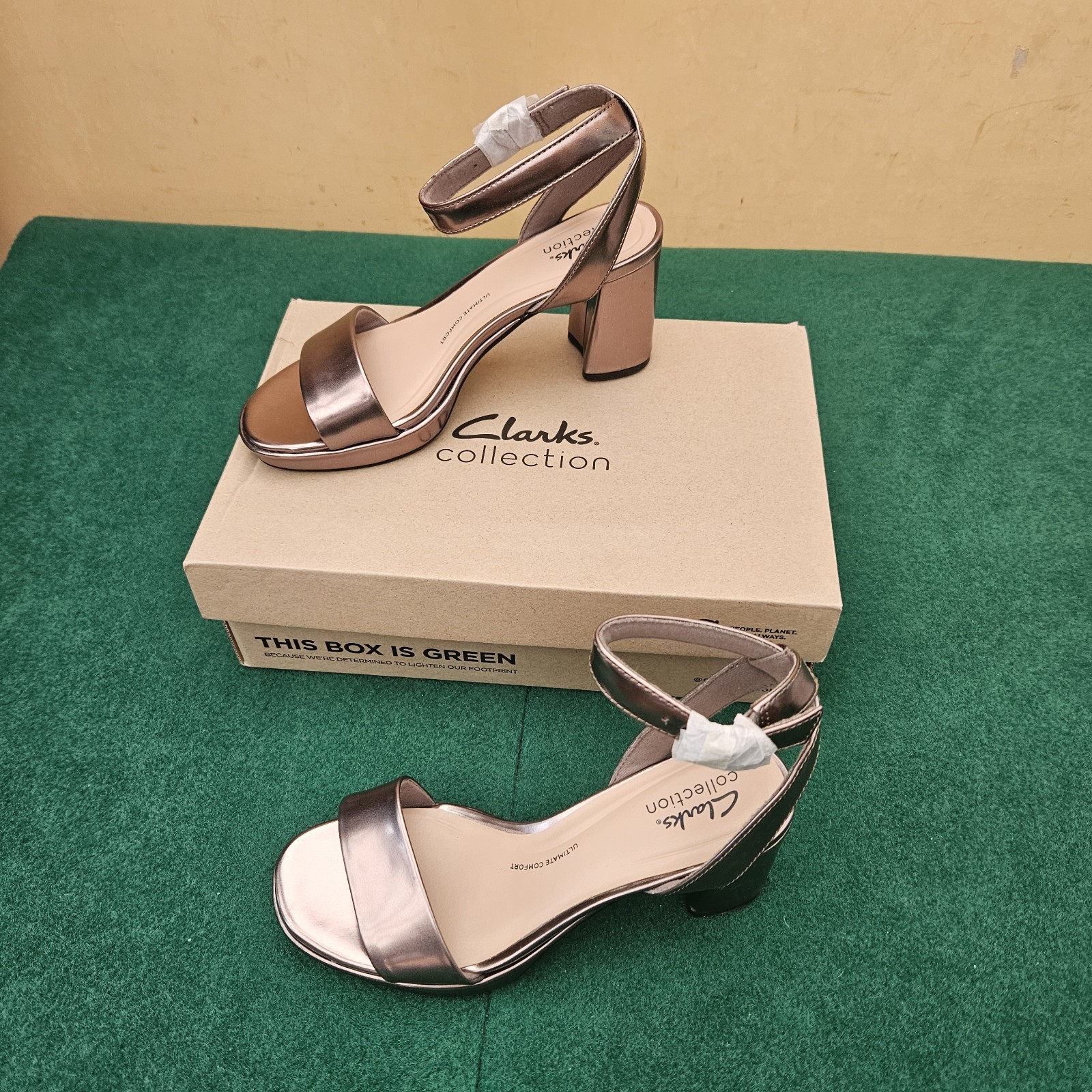 Clarks Womens Ambyrlyn Bay High Heels Size UK 4 Wide Gun Metal Colour Brand New.