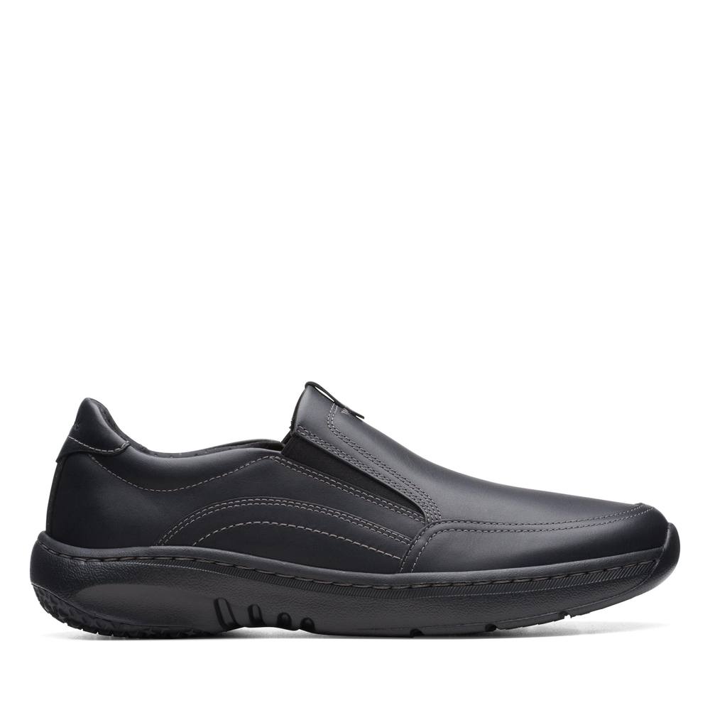Clarks Men Un Abode Go Loafer Black Leather Slip Ons,Loafers | Size: 7.5-Standard Fit