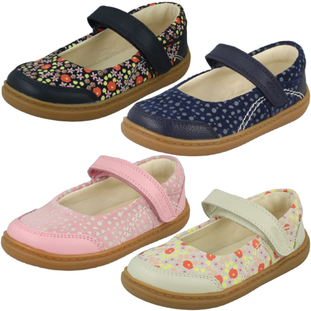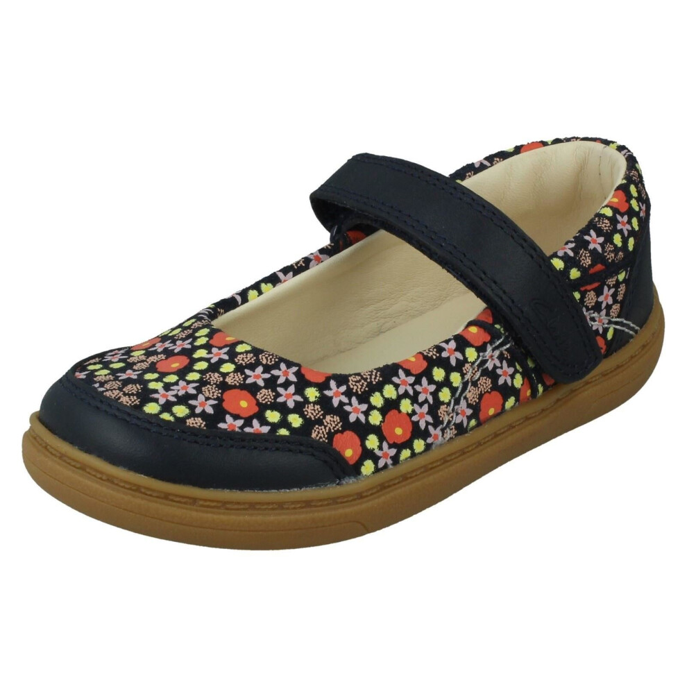 (Navy, UK 7 Infant) Girls Clarks Mary Jane Shoes Flash Stripe - G Fit