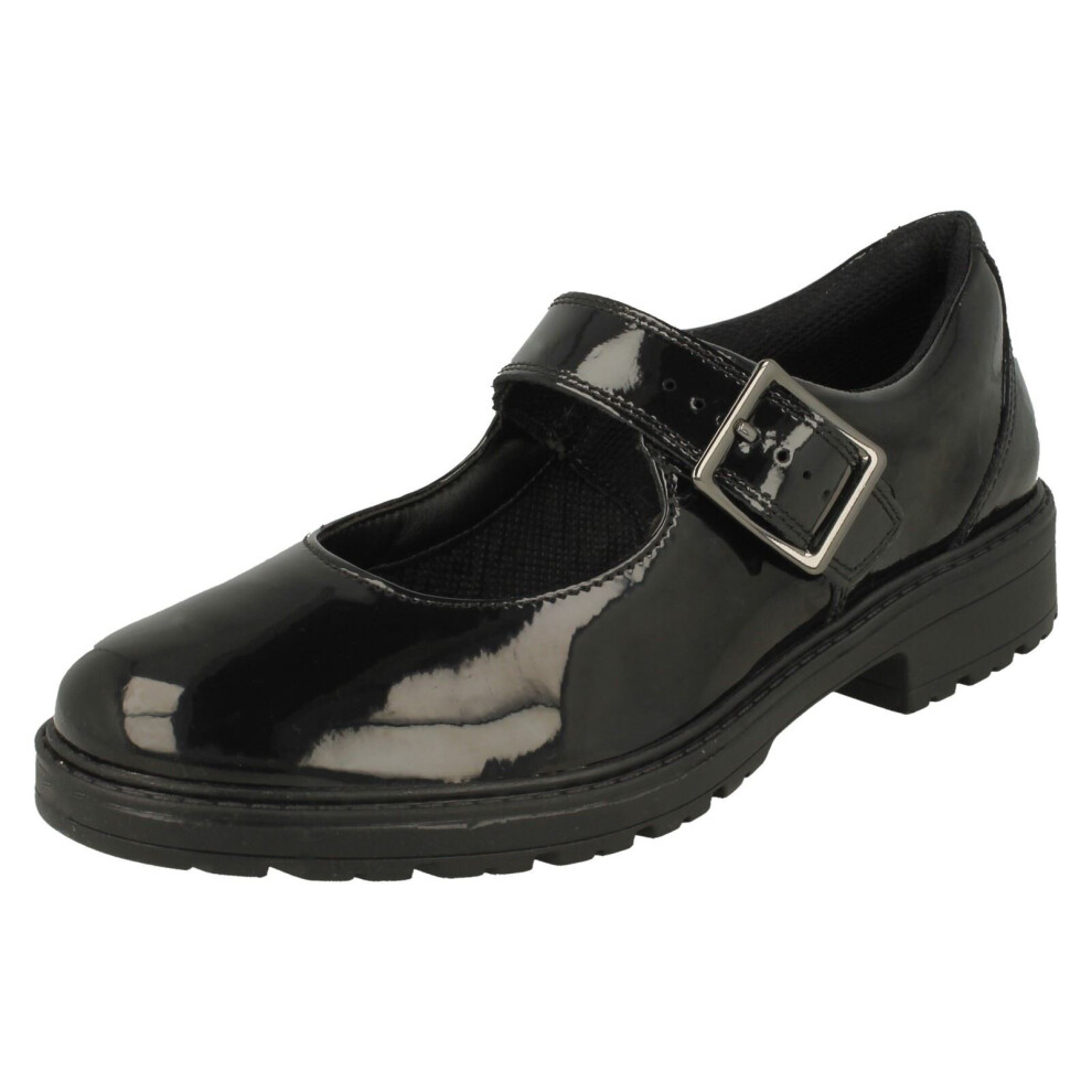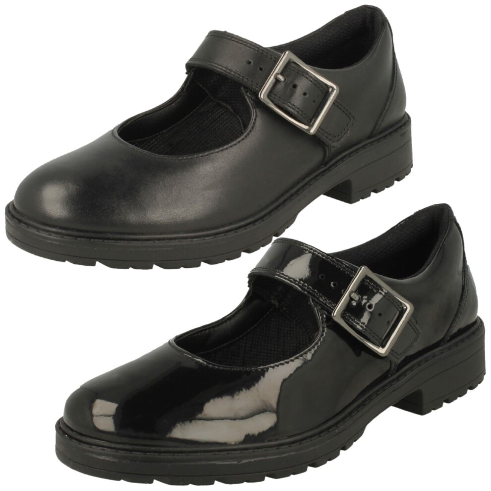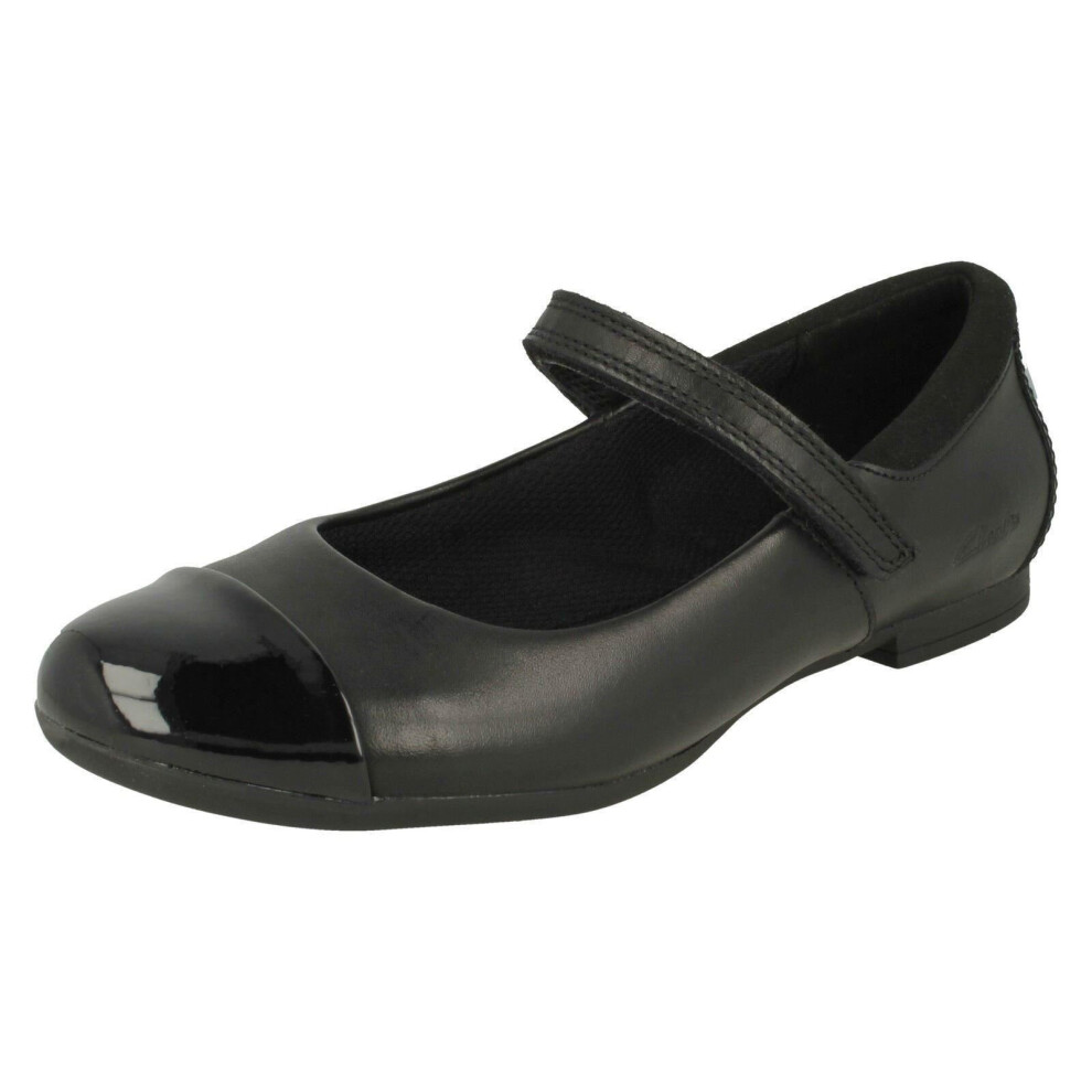 (Black, UK 4 Child) Girls Clarks Mary Jane Style School Shoes Scala Gem Y
