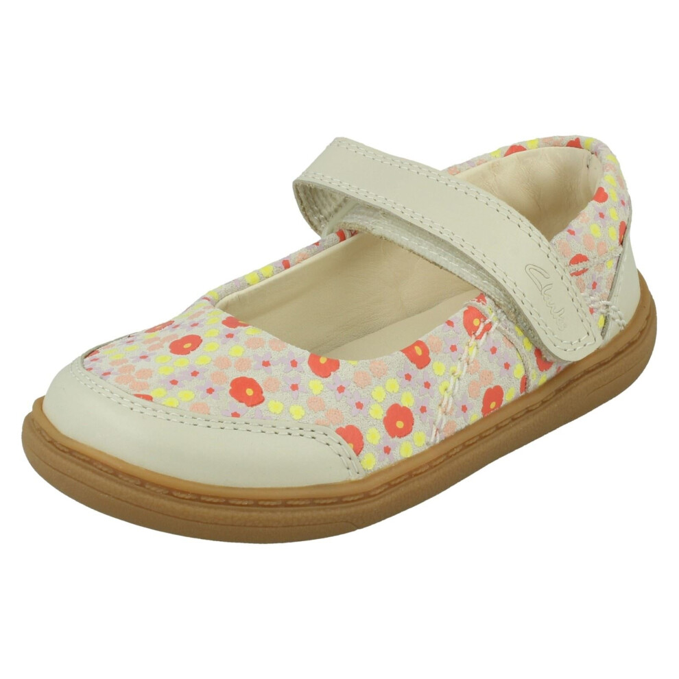 (Ivory, UK 7 Infant) Girls Clarks Mary Jane Shoes Flash Stripe