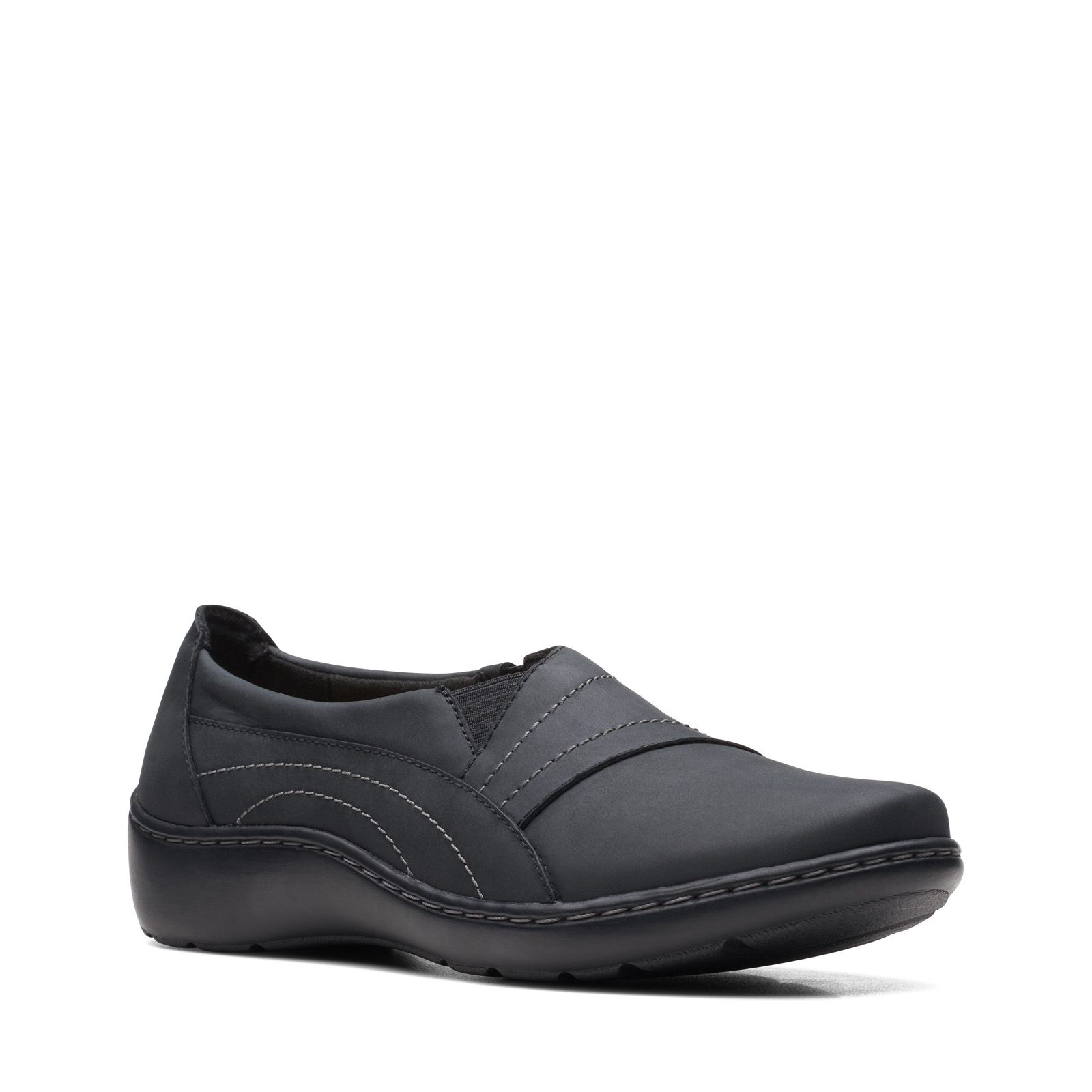 Clarks Cora Edge 26167552 Womens Black Leather Slip On Loafer Flats Shoes