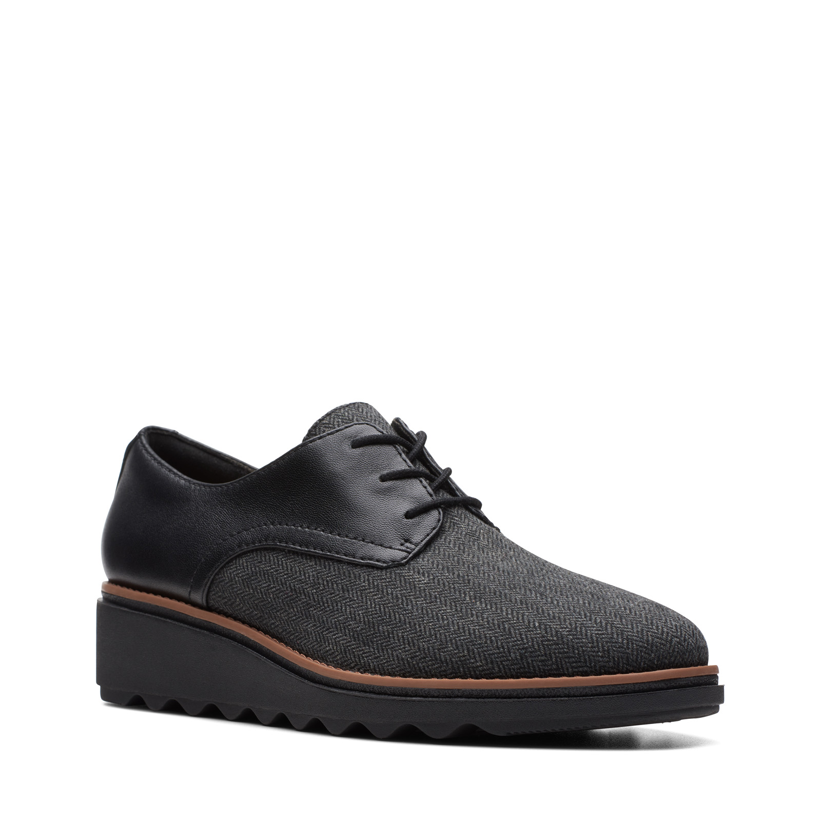 Clarks Sharon Rae 26175417 Womens Black Canvas Lace Up Oxford Flats Shoes