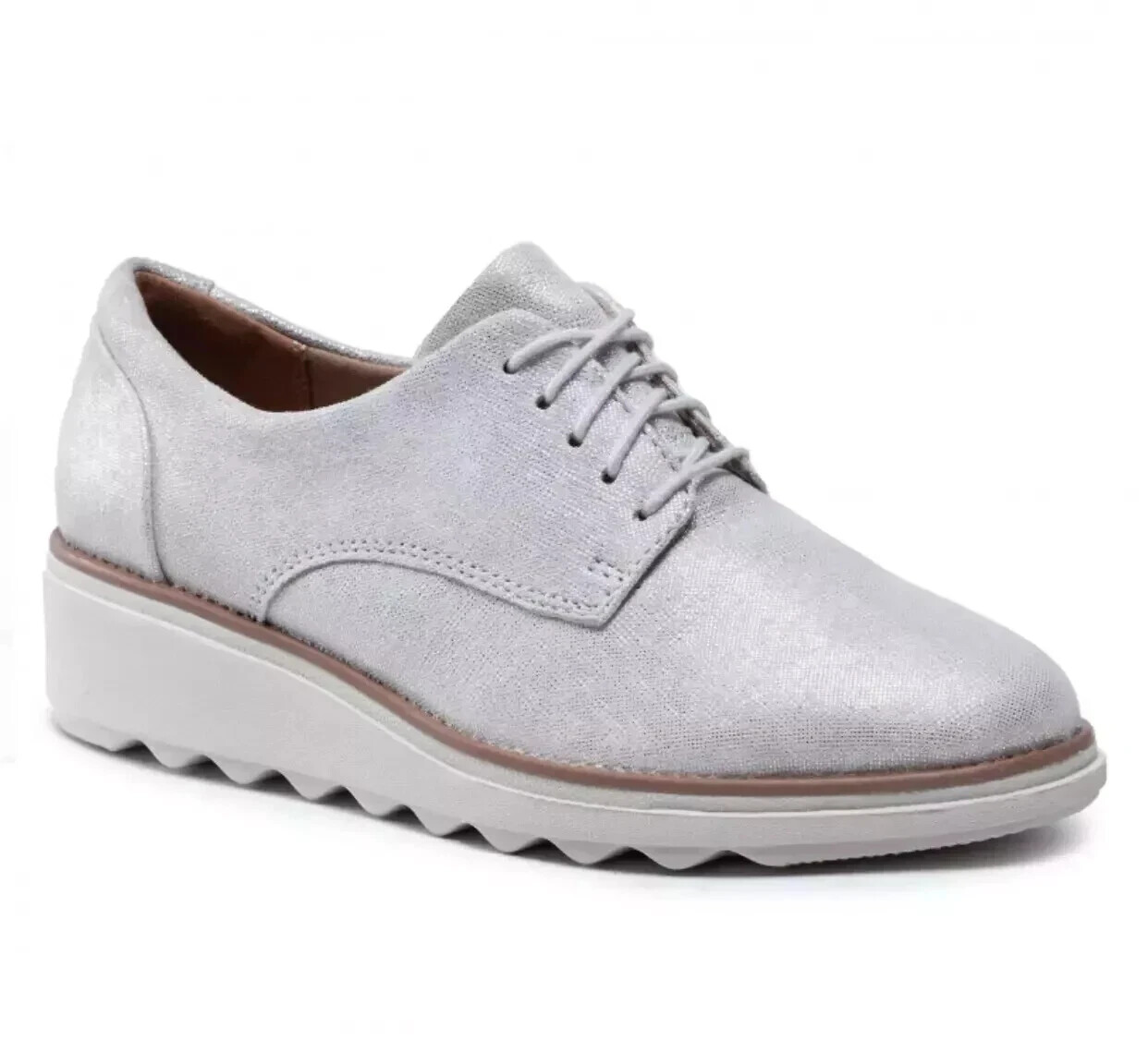Clarks Sharon Noel Womens UK 7 D Silver Metallic Lace Up Casual Flats Shoes