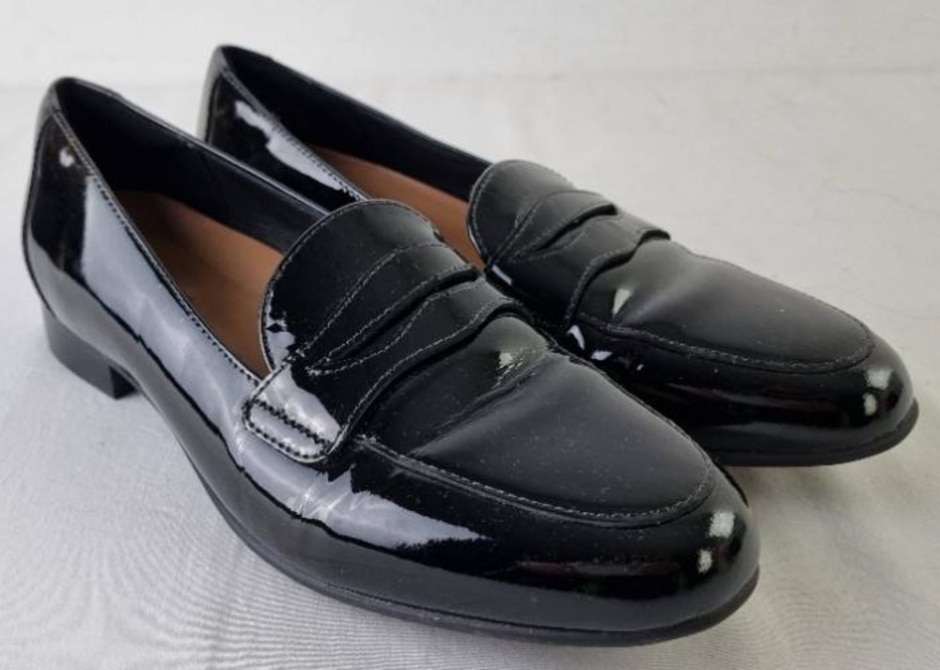 Clarks Unstructured Smart Loafers Black Patent Leather Size Uk 4.5