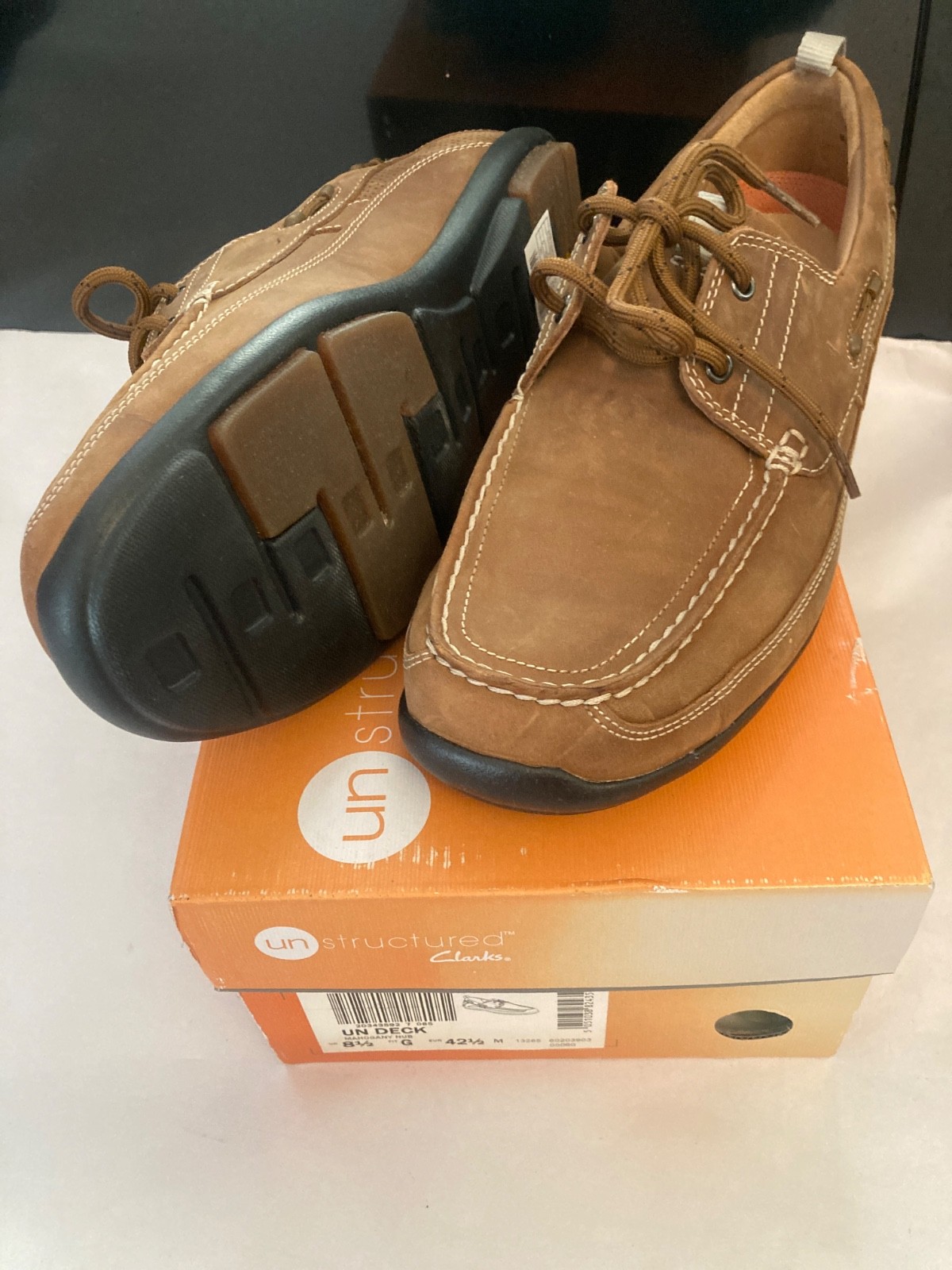 Mens Clarks Unstructured Deck Shoes - Un Deck Mahogany Nub Lace ups size 8.5 G