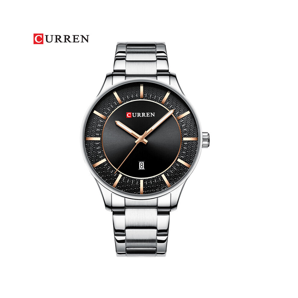 Men Watch Stainless Steel Classy Business Watches Male Auto Date Clock Fashion Quartz Wrist Watch Relogio Masculino (Silver Black)